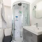 TV, 커피 및 티 메이커, 작은 부엌은 실내 편의 시설 중 하나입니다. 샤워, 드라이어, 목욕 시트도 제공됩니다.